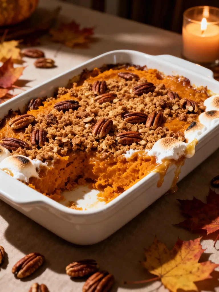 3. Maple-Bourbon Sweet Potato Casserole with Pecan Streusel