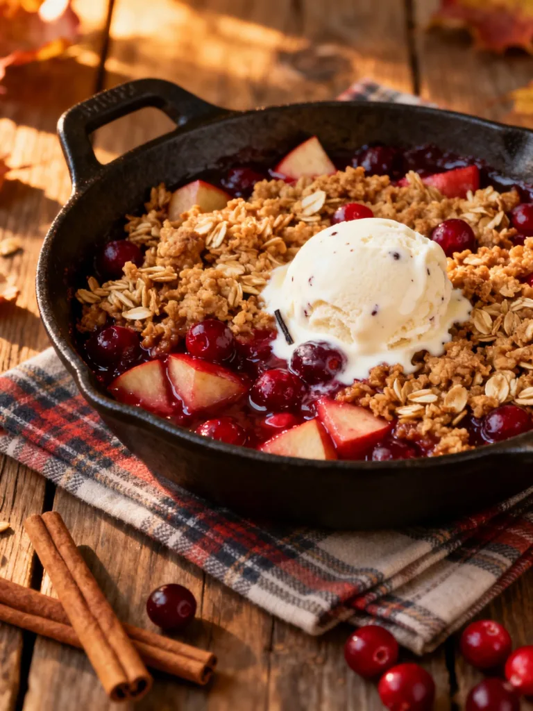 Fresh cranberries and crisp apples come together in a tart-sweet dessert topped with buttery oats. It’s simple, festive, and absolutely irresistible with vanilla ice cream.